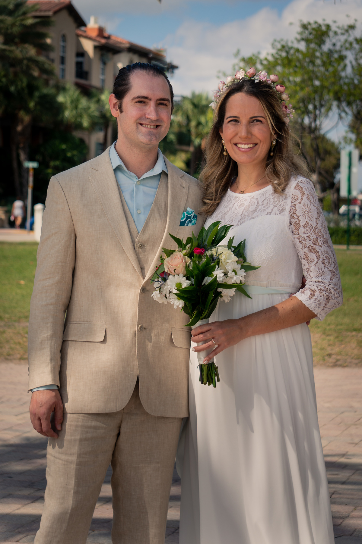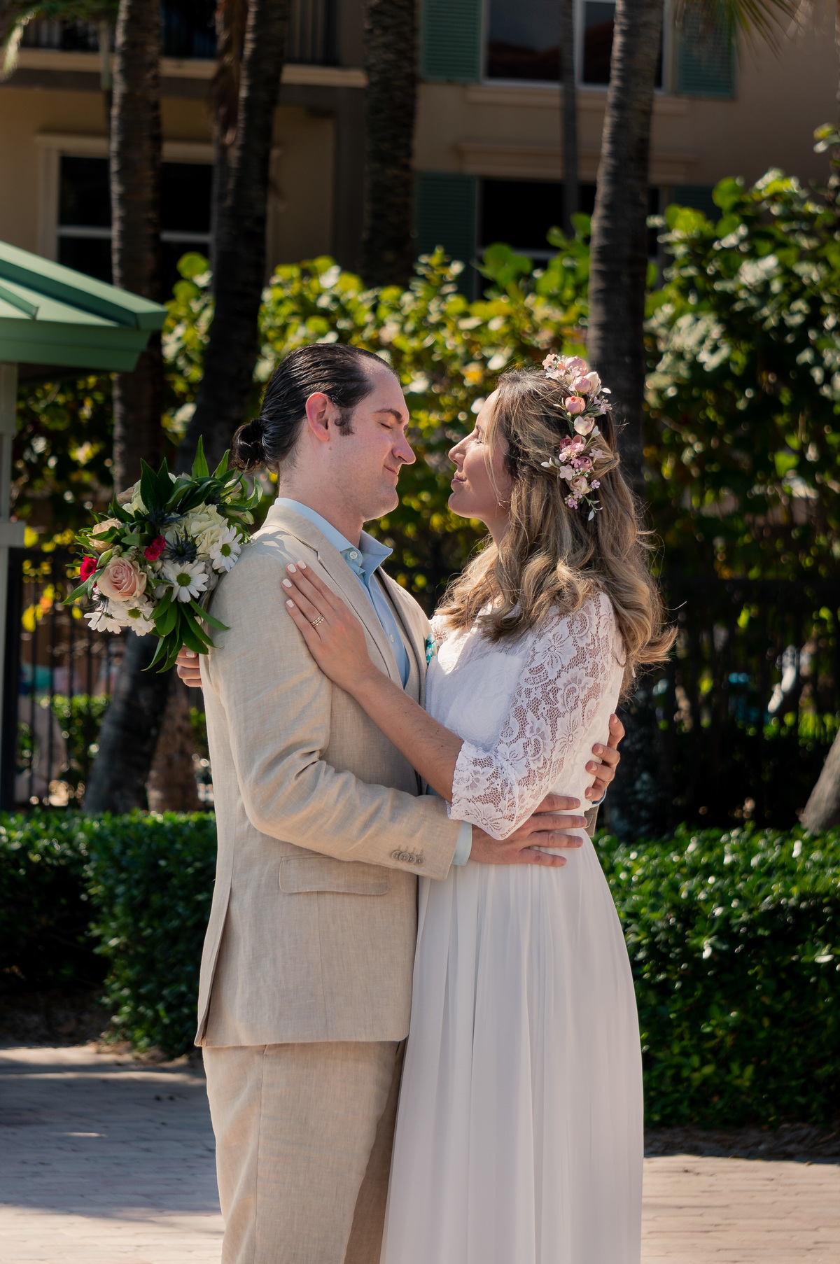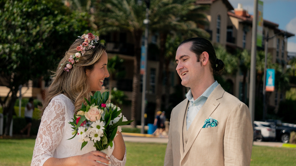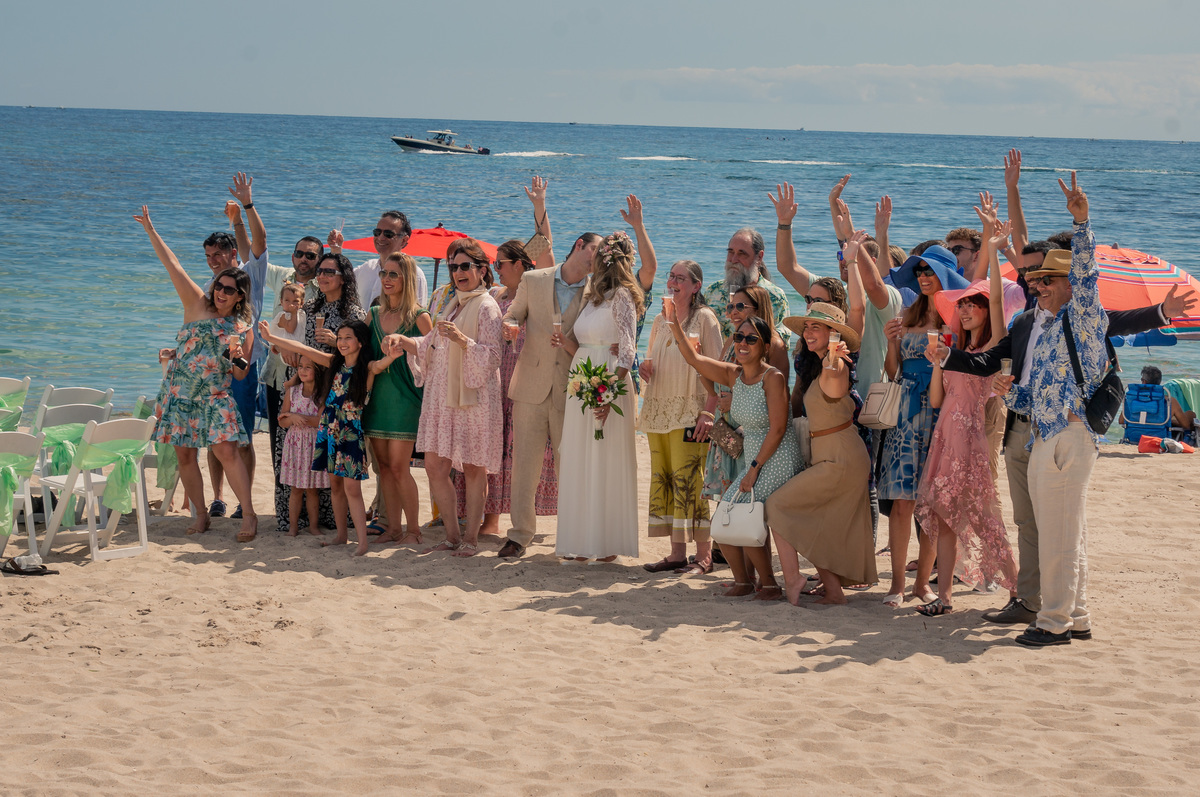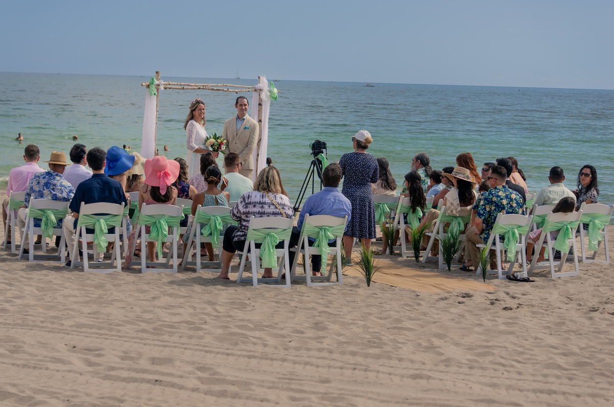 Clara e Aaron realizaram um casamento muito íntimo, para poucos convidados, na Praia de Fortlauderdale.